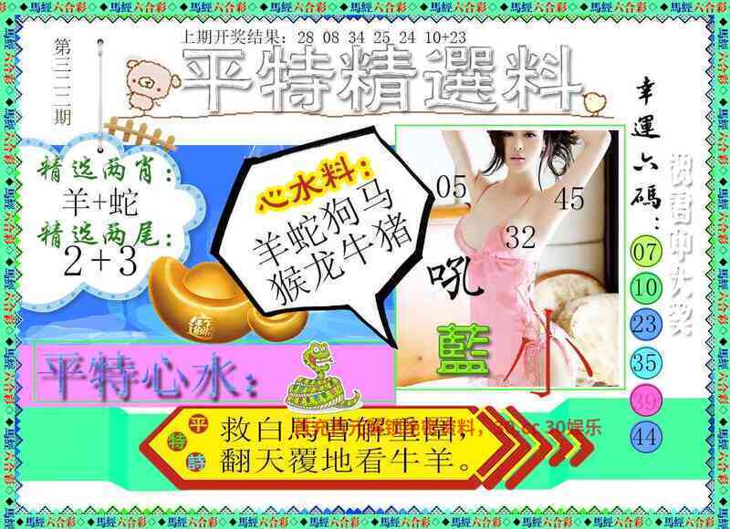 321期:七肖【羊狗鸡蛇猴牛马】开羊23中